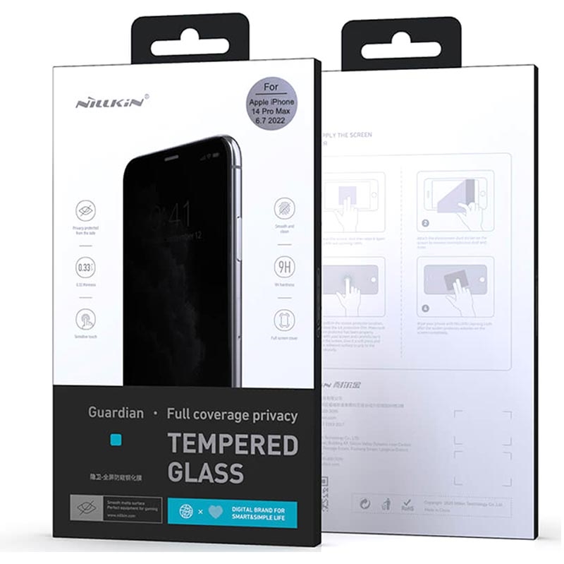 Zaštitite svoju privatnost i ekran svog iPhone 14 Pro Mak ovim visokokvalitetnim Nillkin Guardian zaštitnikom od kaljenog stakla sa punom pokrivenošću privatnosti.