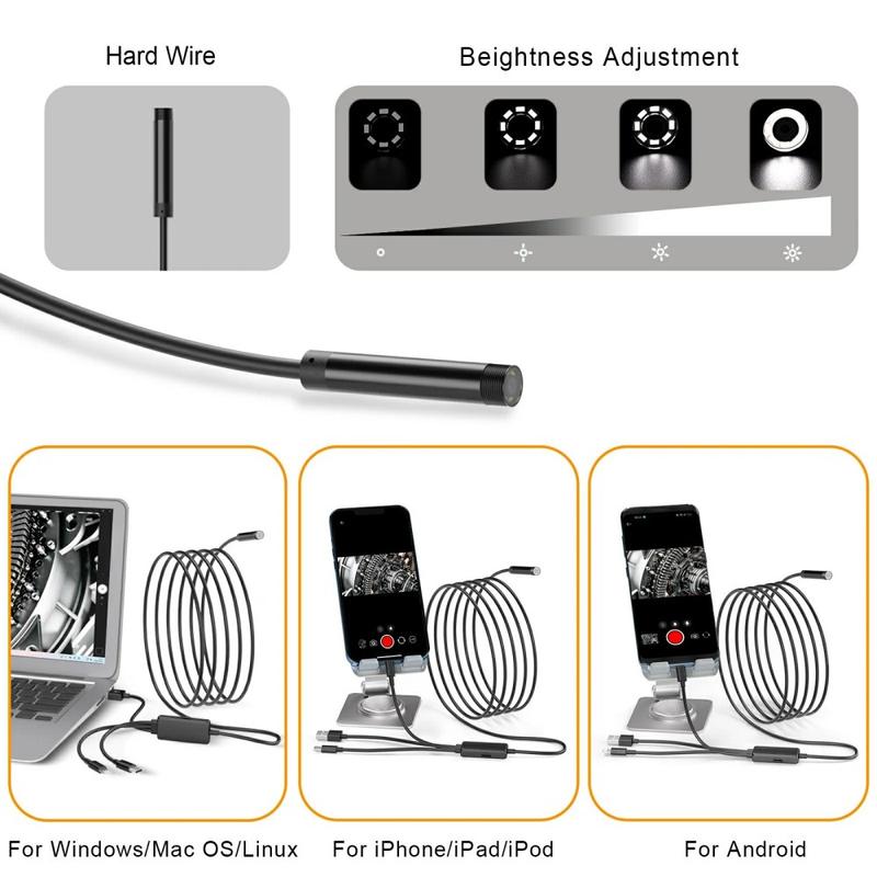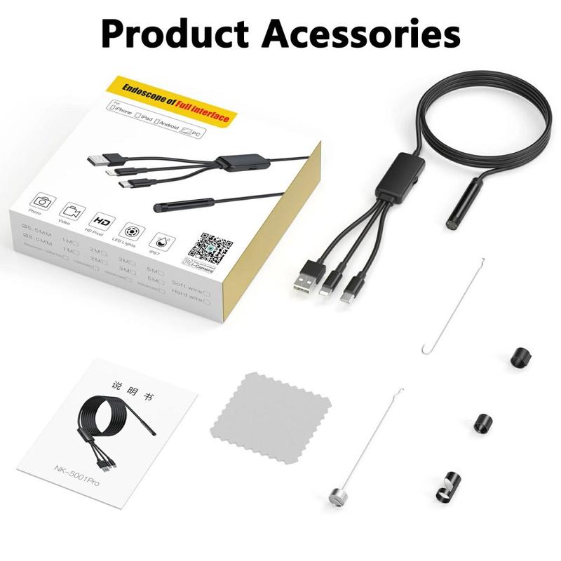 NK-5001Pro 3-in-1 Waterproof IP67 Inspection Camera / Endoscope for iPhone/Smartphone, iPad/Tablet - Lightning, USB-C, USB - 5m, 1080p/720p