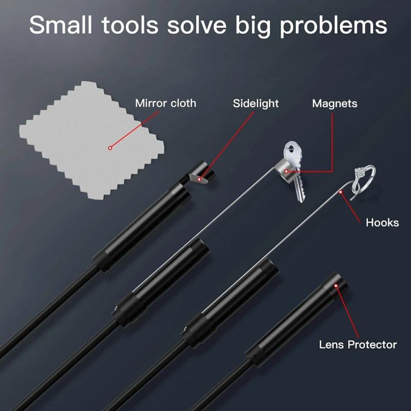 The NK-5001Pro 3-in-1 Waterproof IP67 Inspection Camera/Endoscope is a versatile industrial borescope that is designed to connect directly to your mobile device. With a high-definition camera, this endoscope provides clear images and videos for inspection purposes. The camera is equipped with an 8mm diameter LED auxiliary lighting HD camera, featuring a high-sensitivity chip that allows for use in dark working environments. The aluminum tube has a diameter of 5.5mm and the lens has a focal length of 4-10cm, providing a wide viewing angle of 76 degrees. The endoscope is waterproof with a grade of IP67, making it suitable for various applications.