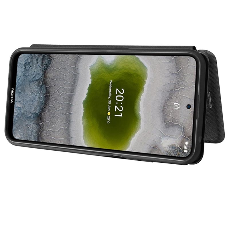 Zaštitite svoj Nokia X10, X20 ovom flip futrolom sa teksturom ugljeničnog vlakna.