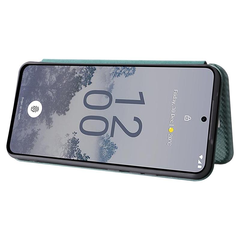 Flip Futrola sa Pregradom za Karticu za Nokia X30 - Ugljenično Vlakno