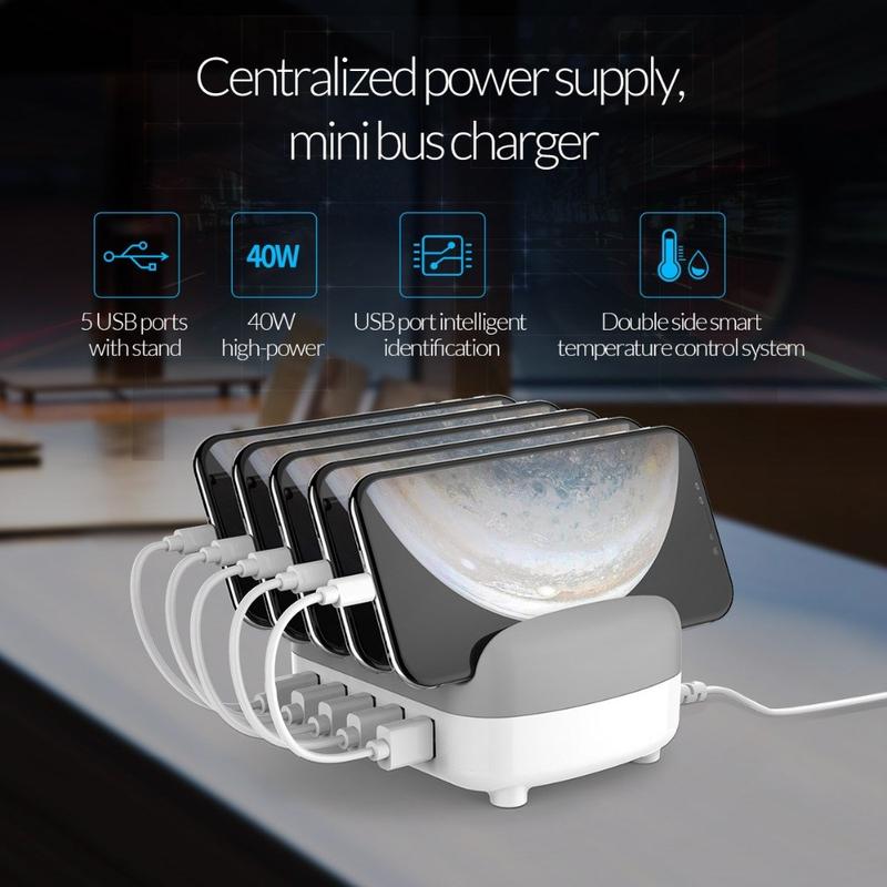 Orico DUK-5P 5-Port USB Charging Station 40W with Phone and Tablet Holder - EU Plug