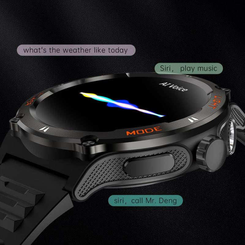 - Major function: Ultra powerful flashlight, compass, 1.53-inch ultra clear screen with 360 * 360 pixels, full screen touch, heart rate, blood oxygen, blood pressure, stress,exercise recording (steps, distance, calorie count), exercise mode, voice assistant, message push, information storage, sleep monitoring, weather push, stopwatch, timer, stopwatch, calculator, world clock,camera remote control, music control, search phone, women's health, etc.