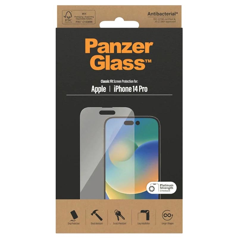 PanzerGlass Classic Fit AntiBacterial Zaštitno Kaljeno Staklo za iPhone 14 Pro