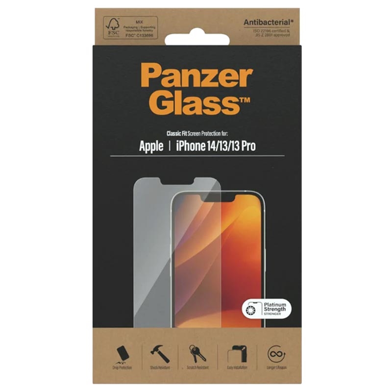 PanzerGlass Classic Fit AntiBacterial Zaštitno Kaljeno Staklo za iPhone 13, iPhone 13 Pro, iPhone 14