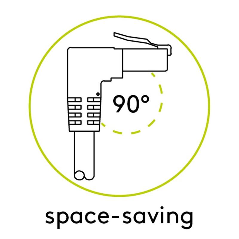 Skärmad CAT 5e LAN-kabel med 2x helgjutna RJ45-kontakter för anslutning av nätverkskomponenter, 1x 90° vinklad RJ45-kontakt är en idealisk lösning i trånga utrymmen. Snäpplåsskyddet på den raka RJ45-kontakten förhindrar att snäpplåset fastnar eller bryts av, vilket garanterar en tillförlitlig internetanslutning. Högkvalitativ kopparklädd aluminiumledare (CCA) och guldpläterade kontaktytor garanterar en utmärkt, högpresterande nätverksanslutning. , Böjskydd och stabilt mantel skyddar Ethernet-kabeln optimalt mot kabelbrott. CAT-kabelns längdangivelse är markerad på den övergjutna, smala böjskyddshylsan på den raka kontakten. CAT-5e-nätverkskabeln är lämplig för Gigabit Ethernet med hastigheter på upp till 10/100/1000 Mbit/s