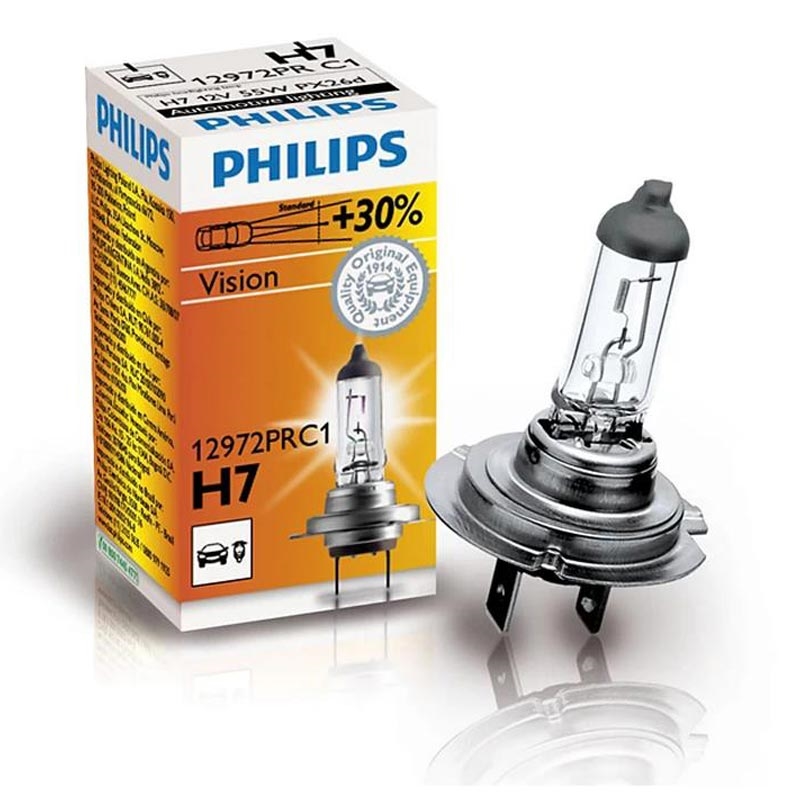 Philips H7 Vision +30% Halogen Car Bulb - 12V, 55W, PX26d