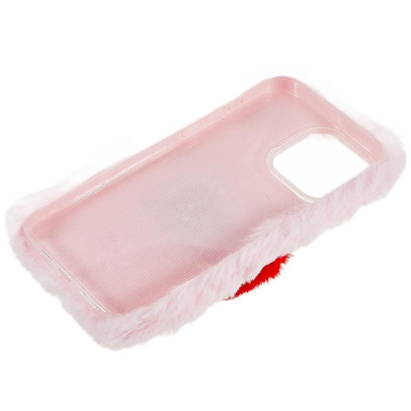 For iPhone 14 Pro Cute Love Heart Design Fluffy Plush TPU Protective Case Flexible Mobile Phone Back Cover