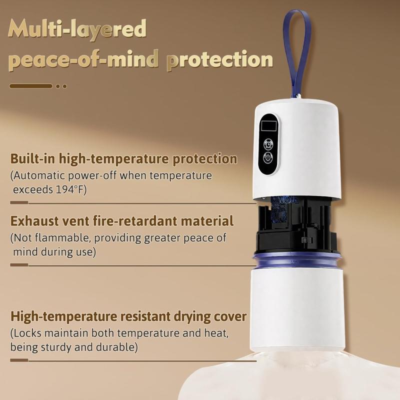 The dryer includes high-temperature protection, automatically cutting power if temperatures exceed 90°C. The fire-resistant air outlet material adds an extra layer of safety for everyday use.