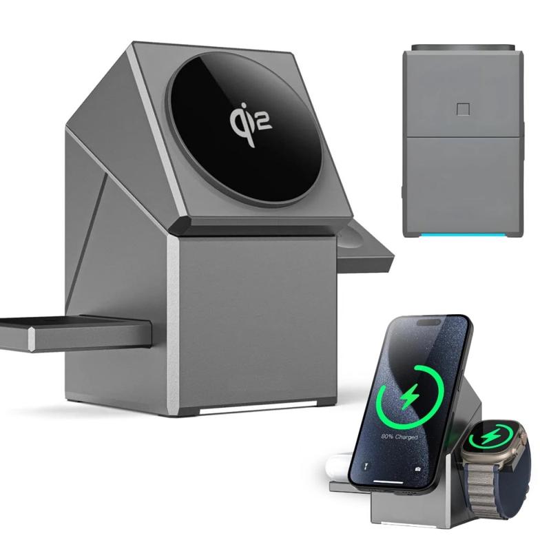 Premium 3-in-1 Rotatable Qi2 Magnetic Wireless Charging Station for iPhone, Apple Watch & AirPods