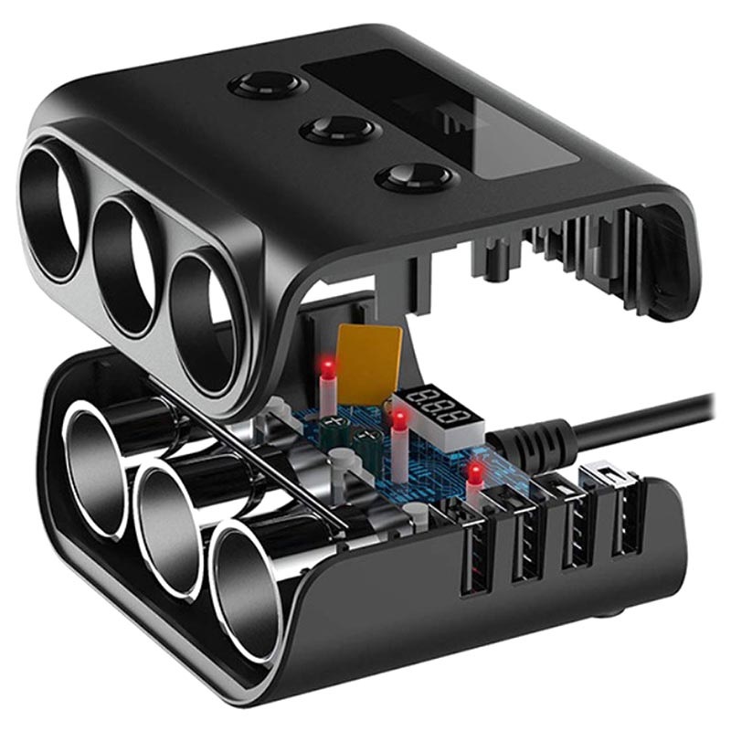 Zahvaljujući ovom fantastičnom auto punjaču utičnici za upaljač u kolima možete da dodate još tri USB porta i da istovremeno punite čak četiri uređaja! Punjač je opremljen LED displejem koji pokazuje status punjenja i napon baterije, pri čemu je ukupna snaga tri utičnice 100W sa ulazom 12V/24V. Uz to, uređaj je kompaktan, kompatibilan sa većinom automobila i ima kabl dužine 58cm koja je više nego dovoljna.