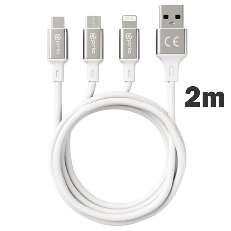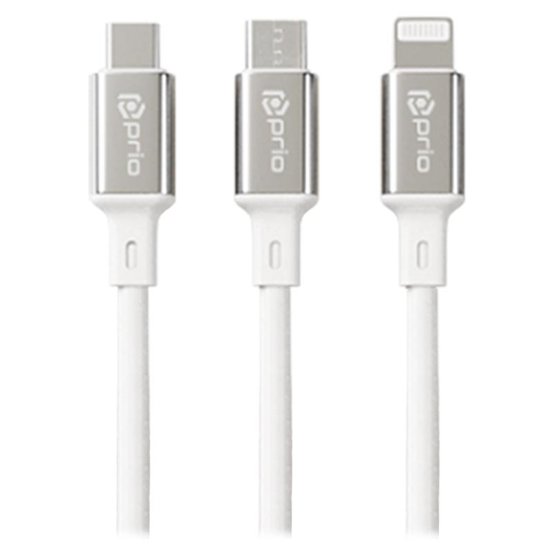 Prio High-Speed 3-u-1 Kabl za Punjenje - Lightning, USB-C, MicroUSB, 3A, 18W