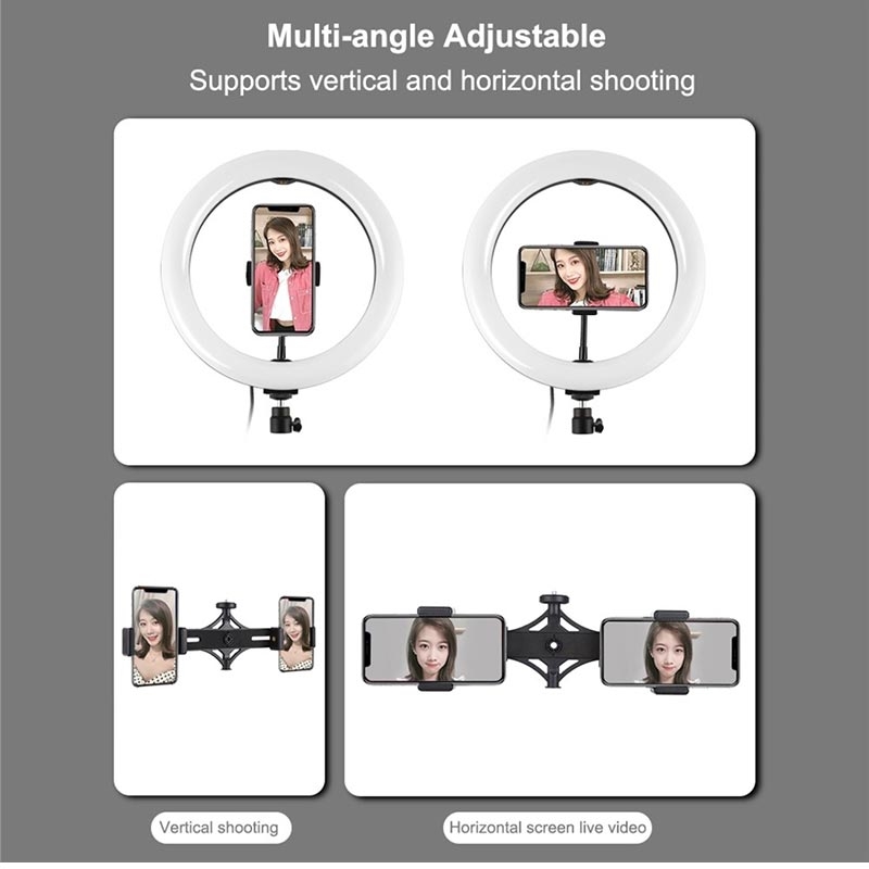 LED ring light can be mounted on the holder and take it anywhere, it can also be removed from the stand at any time, the tripod ball head can 360 degree rotating can free to adjust to any angle