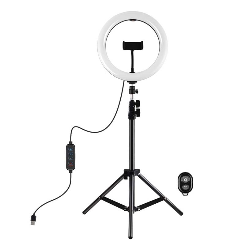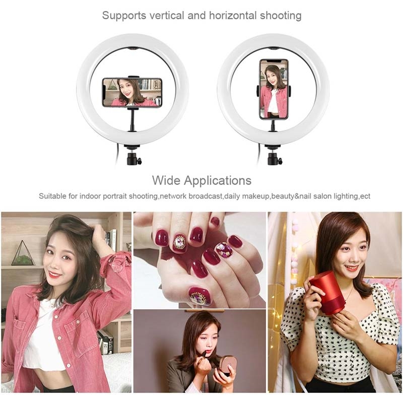 LED ring light can be mounted on the holder and take it anywhere, it can also be removed from the stand at any time, the tripod ball head can 360 degree rotating can free to adjust to any angle