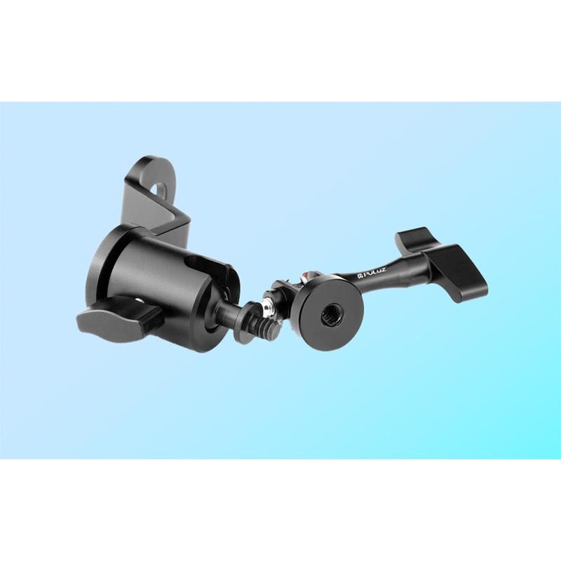 Puluz PU1056B Aluminum Motorcycle Rearview Mirror Camera Mount - 360-Degree Rotation, 1/4" Thread + GoPro Mount, Up to 2kg Load, Fits 10mm Mirror Bolts