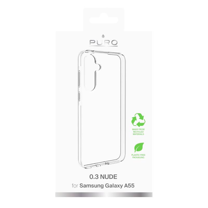 Ova 0.3 Nude maska kompanije Puro štiti finu površinu zadnjeg dela Vašeg Samsung Galaxy A55 uređaja.