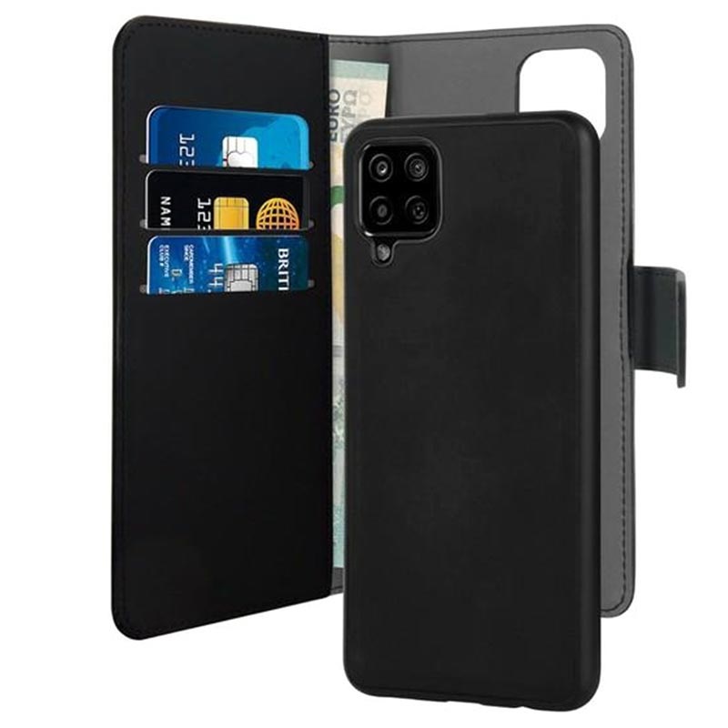 The Puro 2-in-1 wallet case features a detachable cover for your Samsung Galaxy A12 and compartments for your credit cards.