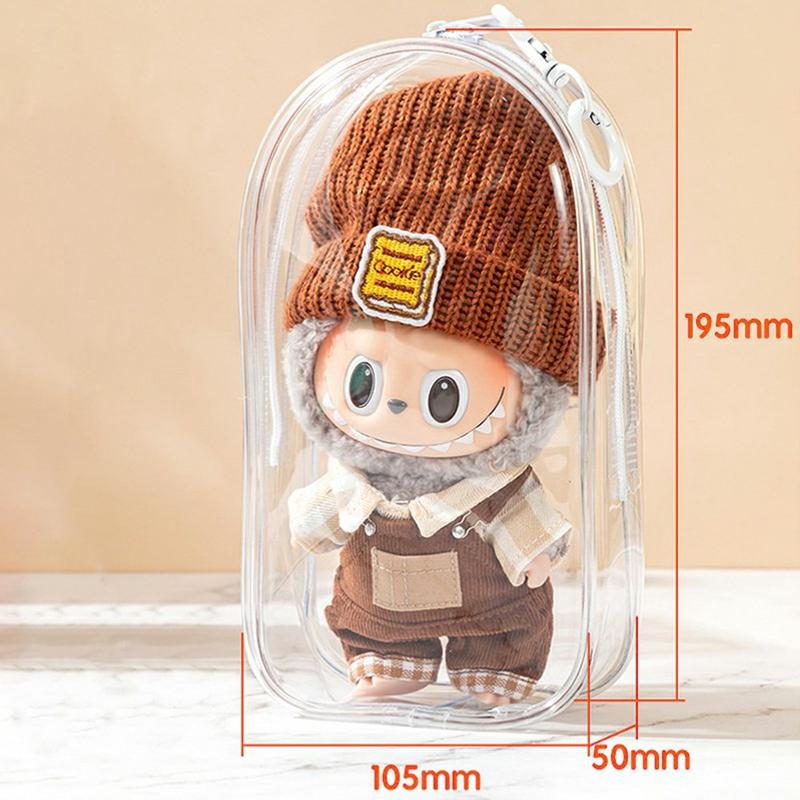 PVC Storage Bag with Keychain for 17cm Labubu Plush & Mini Figures - Dust-Proof Portable Storage Case