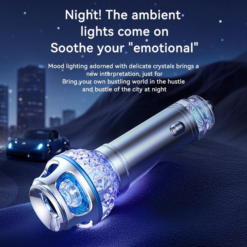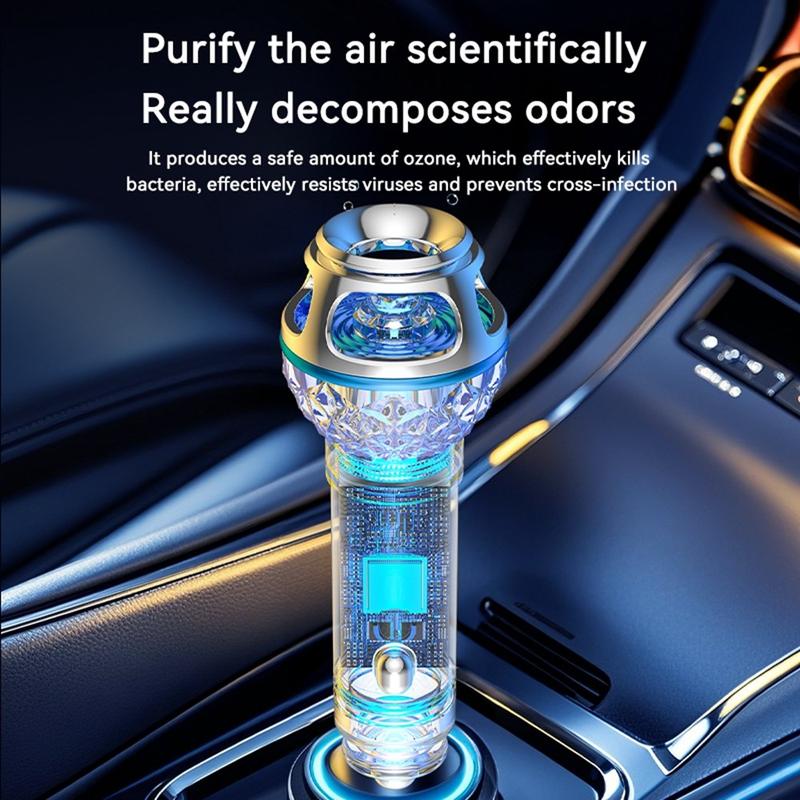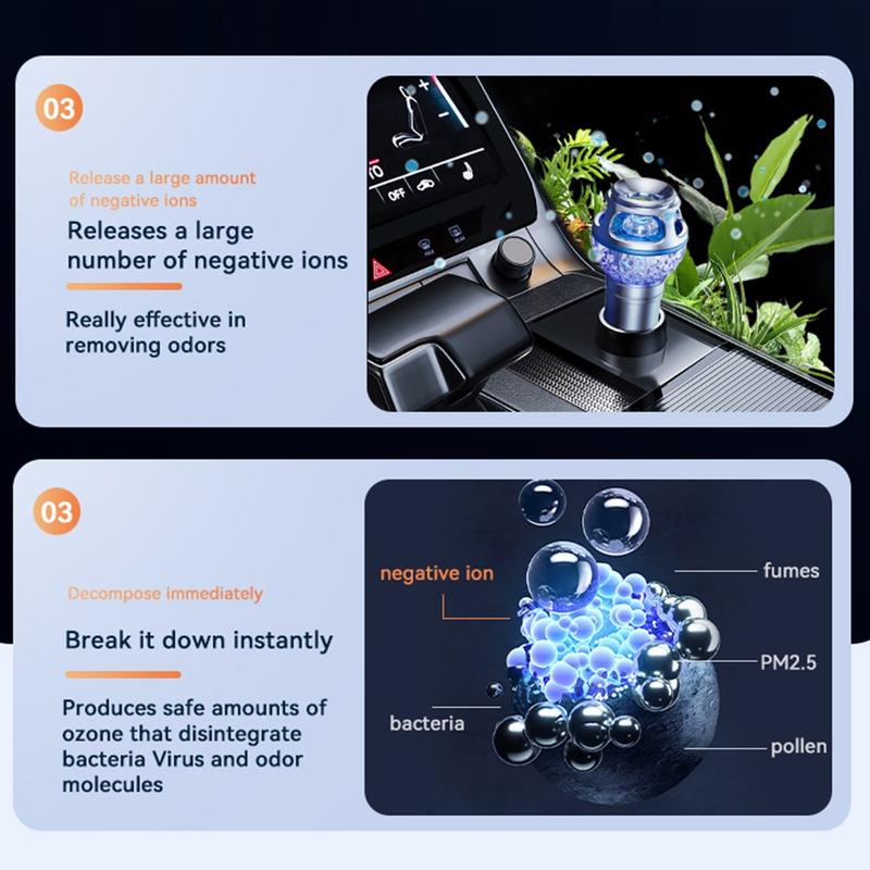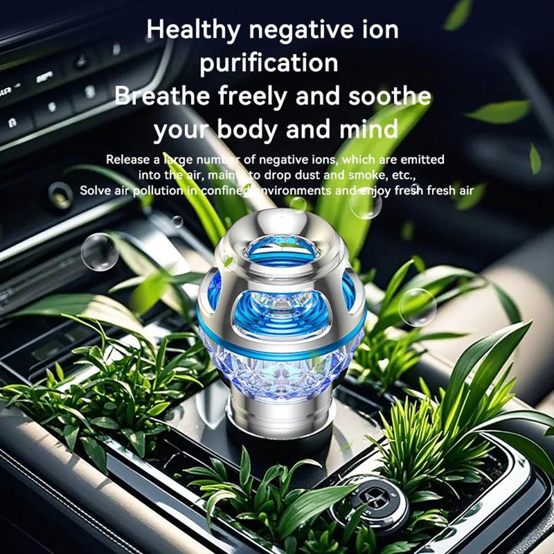 Refresh your driving environment with the Q1 car air purifier ionizer, a compact in-car air freshening solution designed to help reduce unpleasant smells and create a cleaner-feeling cabin atmosphere. With a sleek metal and aluminum alloy body, silent operation, and elegant blue ambient lighting, this car gadget combines practical everyday use with a modern interior-friendly design.
