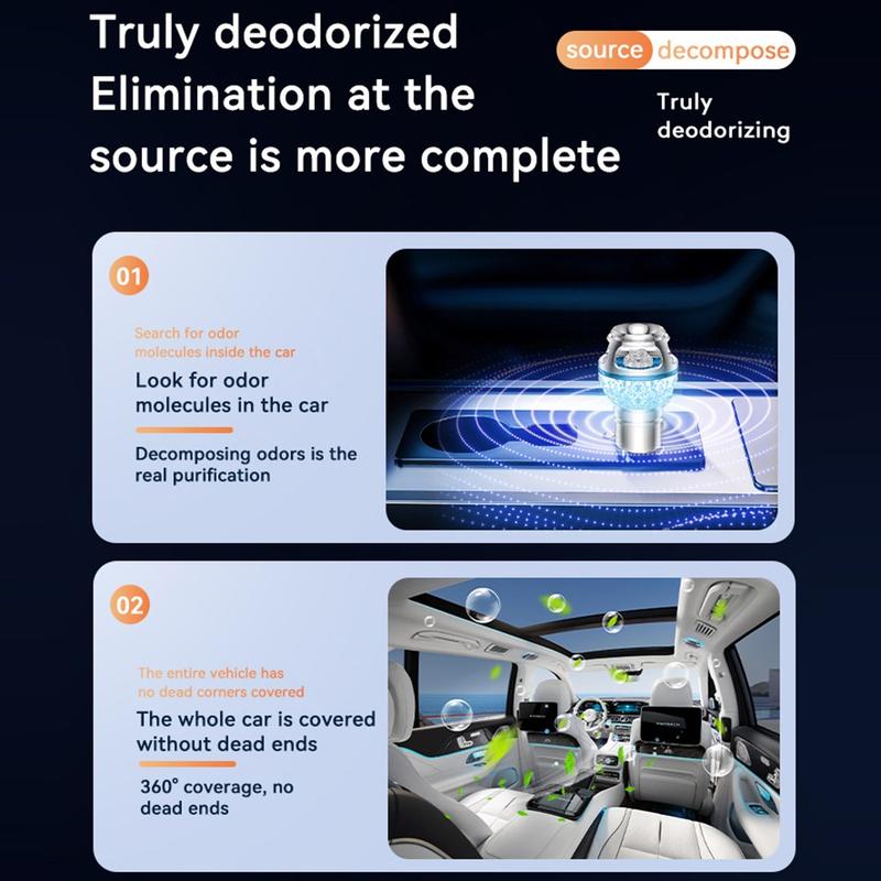 Unlike standard car fresheners that simply cover unwanted smells, this purifier is designed to help tackle odor molecules directly. Its 720 purification coverage supports more even air treatment throughout the cabin, helping freshen the air around the driver, passengers, seats, and footwells. The combination of high-concentration negative ions and low-level ozone works together to support a more pleasant in-car environment during daily commutes, long drives, or time spent in traffic.