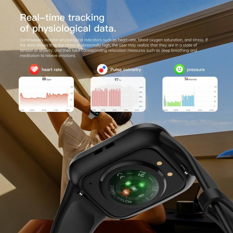 - Health monitoring: heart rate, blood pressure, blood oxygen, body temperature, stress, and sleep