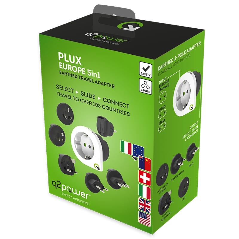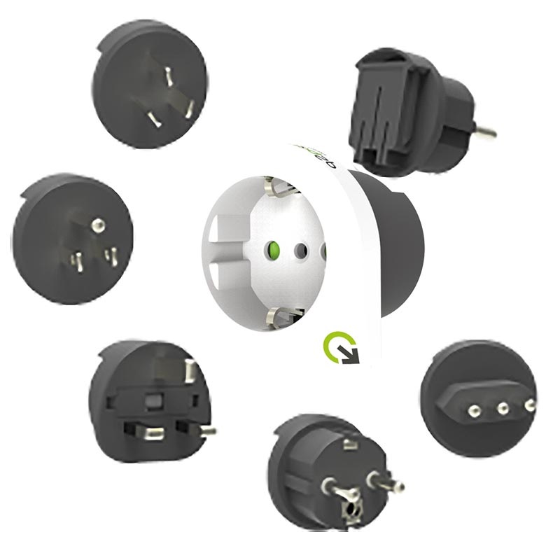 Putujte širom sveta sa samo jednim putnim adapterom. Q2Power Qdapter je najbolje rešenje za punjenje uređaja za sve one koji putuju svuda po svetu. Pogodan je za upotrebu na svim kontinentima, a sve što je potrebno je da izvučete odgovarajući priključak za trenutnu destinaciju. Punite svoje uređaje u više od 120 zemalja širom sveta!