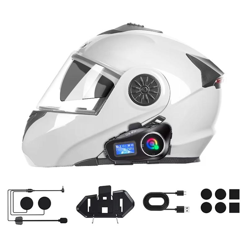 Q58Max Motorcycle Helmet Bluetooth Intercom Headset - 500m Rider Intercom with FM Radio, LED Light and Hard Mic