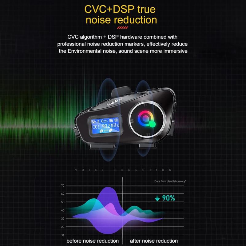 The Q58Max is a strong choice for riders who want several useful functions in one helmet accessory instead of buying separate devices. It combines intercom communication, Bluetooth audio, FM radio, voice assistant support, and an LED light in a compact design that fits different helmet types. Long battery life, waterproof construction, and broad everyday functionality make it especially practical for commuters, touring riders, and users who value hands-free convenience on the road.