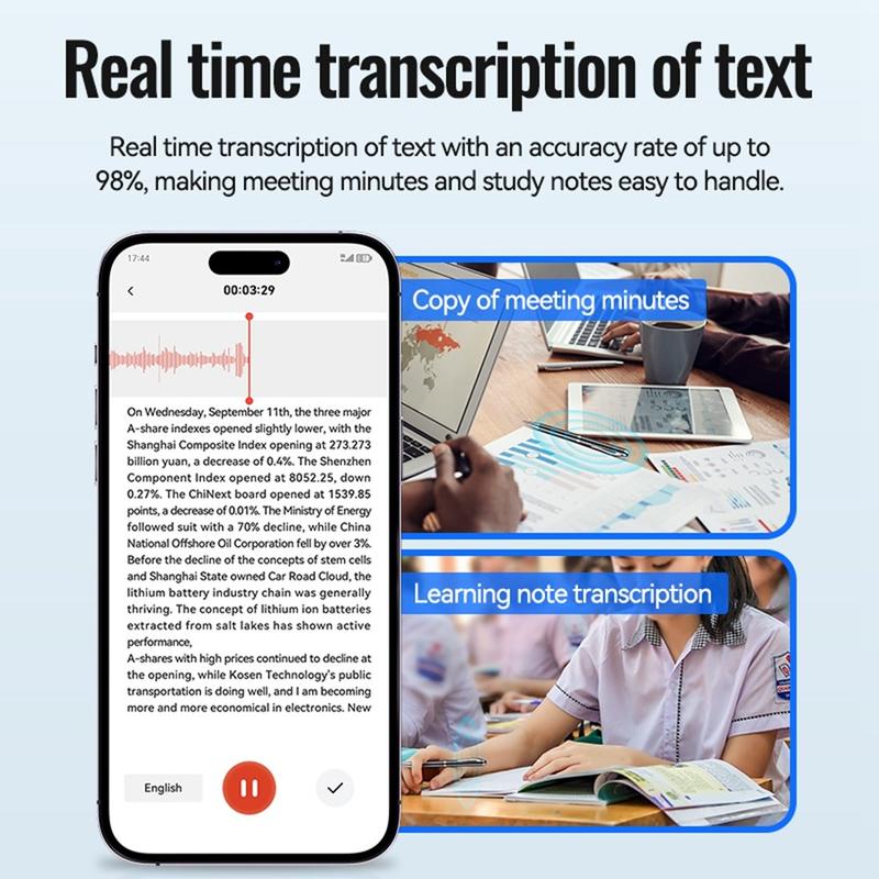 - Travel & interviews: Break language barriers with real-time translation and recording.