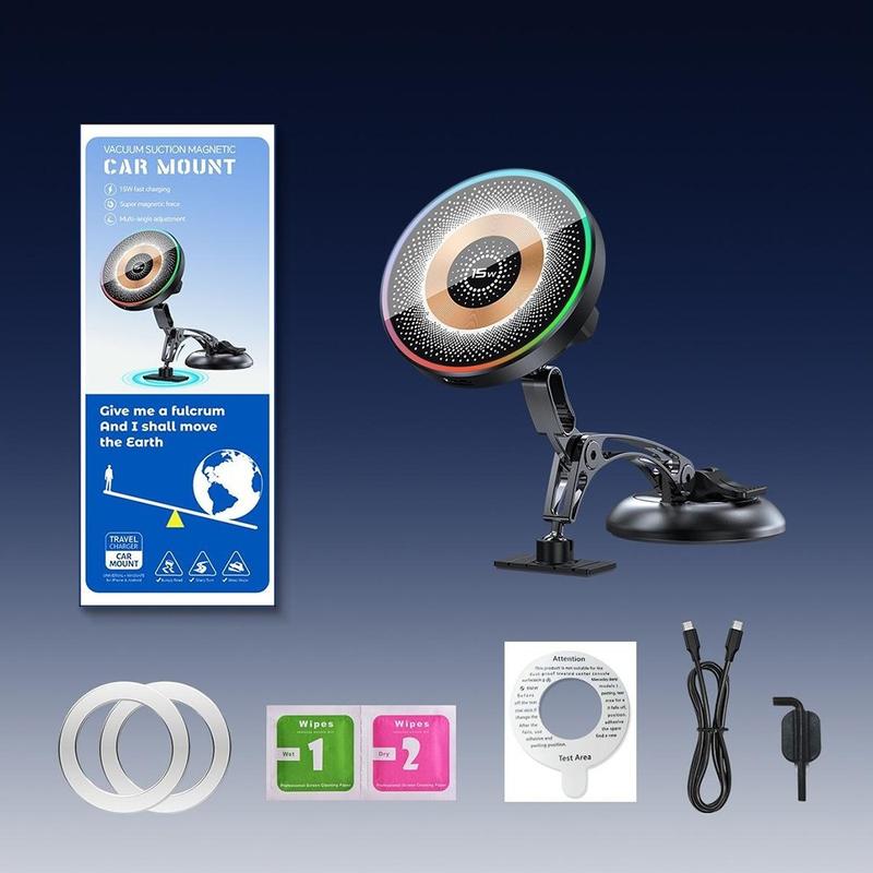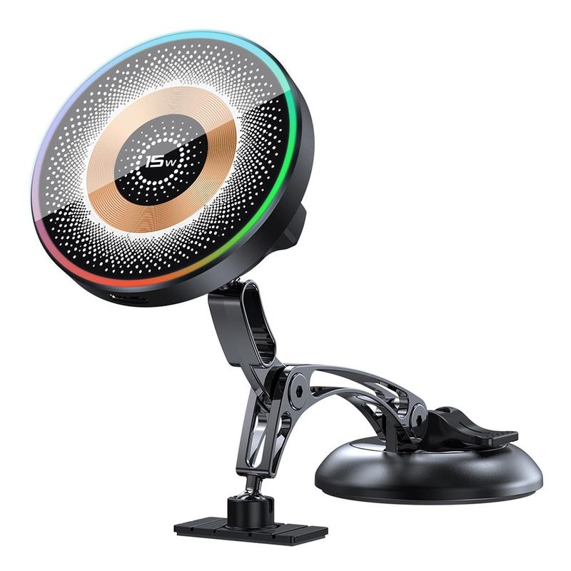QH-AKD248 Magnetic Car Mount with 15W Wireless Charging and Vacuum Suction for Dashboard or Windshield
