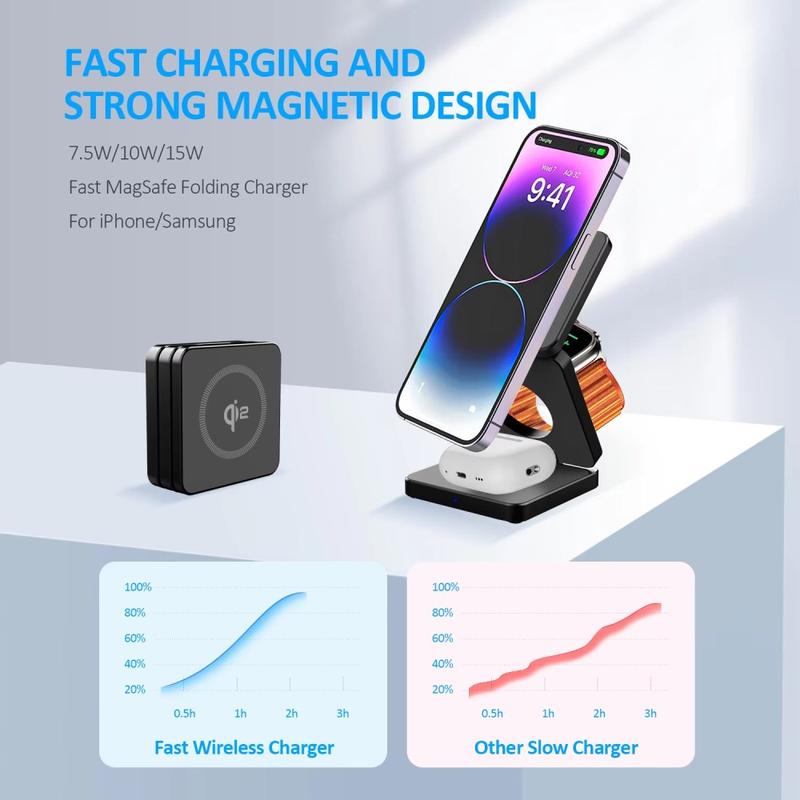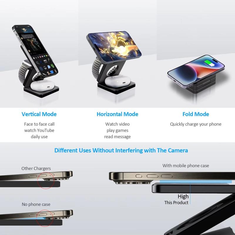 Qi2 15W 3-in-1 Foldable Magnetic Wireless Charger Stand - for iPhone, Apple Watch & AirPods