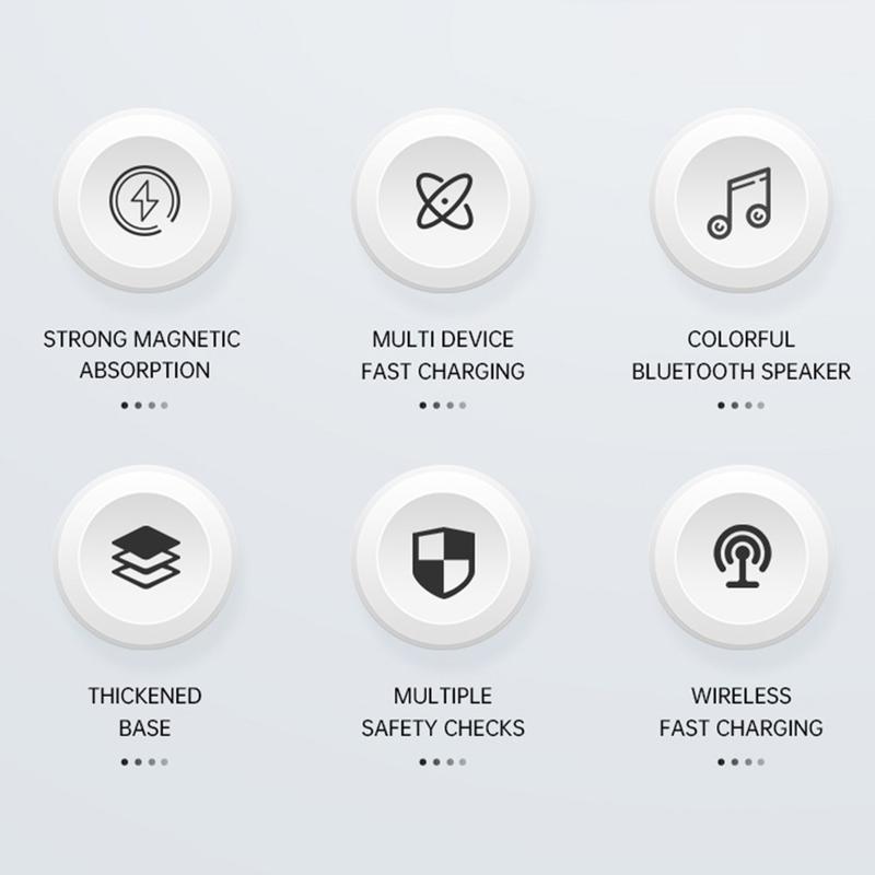 Users who want a compact, multifunctional charging dock that blends wireless charging, lighting, and audio into one elegant device — perfect for home, office, or bedside setups.