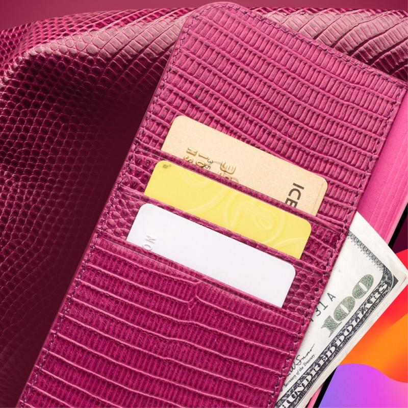 Wrap your iPhone 15 Plus into this stylish Qialino wallet leather case, and it will look more elegant than ever. The integrated cover is made of TPU with all the necessary cutouts for ports, while the wallet is made of genuine leather with a crocodile skin texture. This iPhone 15 Plus wallet case offers good protection and storage for up to three cards and some cash.