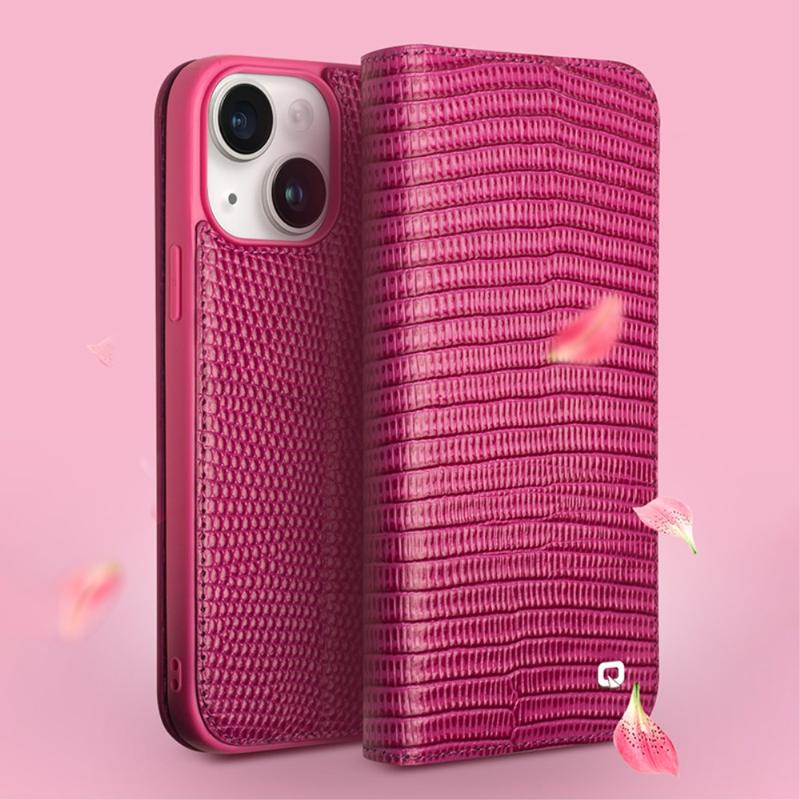 - High-quality wallet leather case for iPhone 15 Plus, made by Qialino