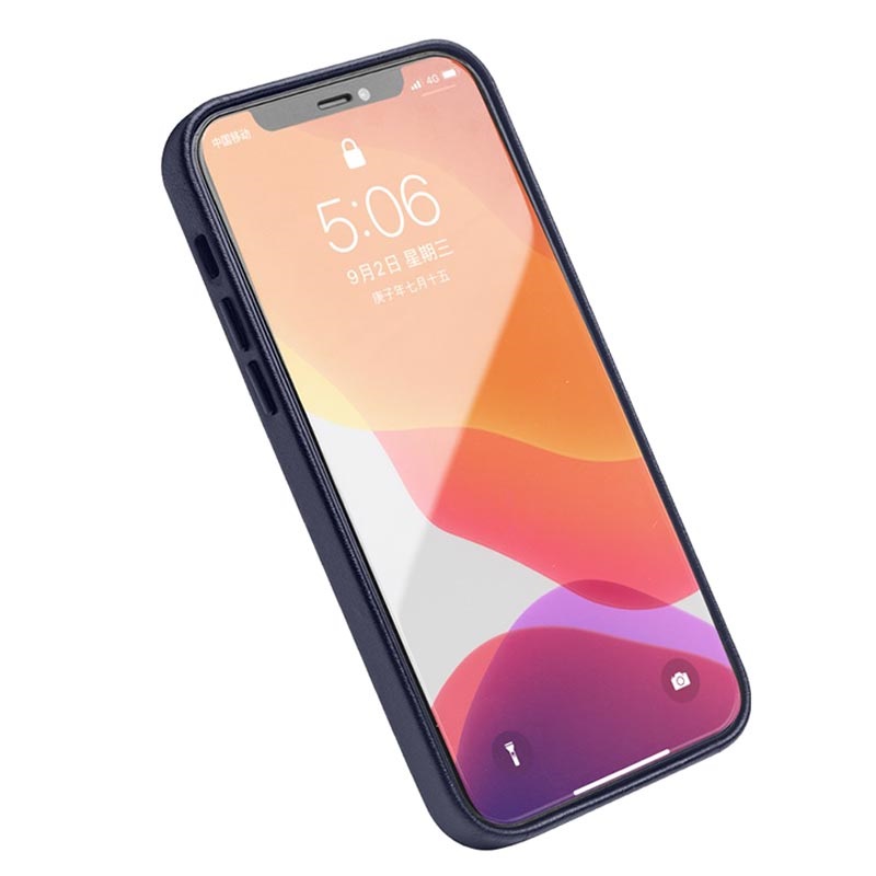 Qialino Premium iPhone 12/12 Pro Kožna Zaštitna Maska - Plava