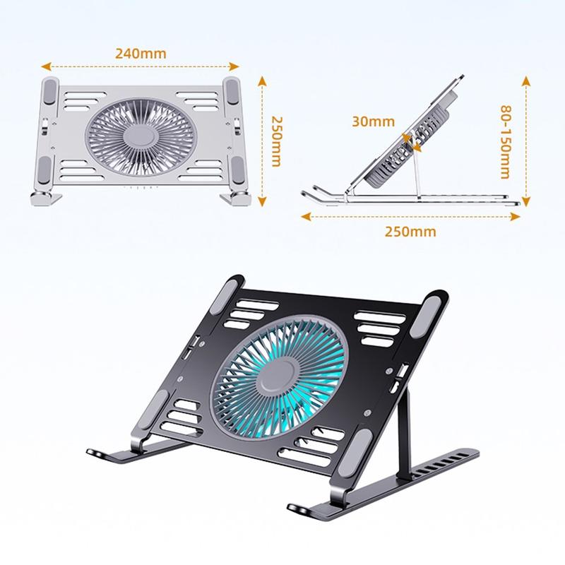 Enhance your laptop's performance with the R-JUST HZ44 Foldable Height Adjustable Laptop Cooling Fan Base. This sleek black stand is crafted from durable metal and features a built-in cooling fan to keep your laptop at optimal temperatures during intensive use. Its foldable design and adjustable height offer customizable comfort, making it perfect for both work and leisure. Whether you're gaming, working, or streaming, this stand ensures your laptop remains cool and stable.