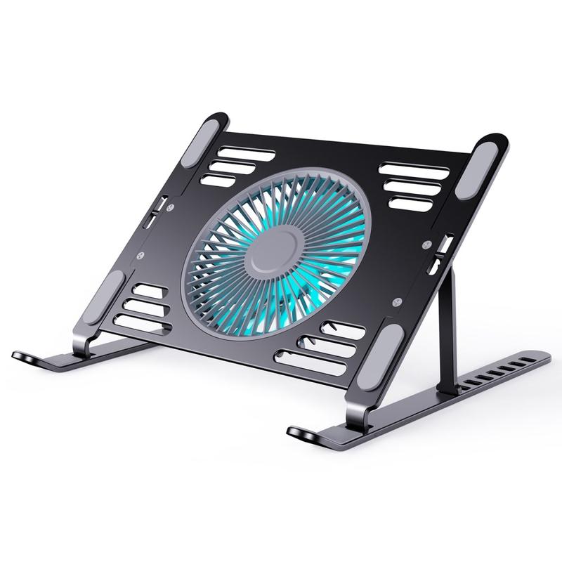 Enhance your laptop's performance with the R-JUST HZ44 Foldable Height Adjustable Laptop Cooling Fan Base. This sleek black stand is crafted from durable metal and features a built-in cooling fan to keep your laptop at optimal temperatures during intensive use. Its foldable design and adjustable height offer customizable comfort, making it perfect for both work and leisure. Whether you're gaming, working, or streaming, this stand ensures your laptop remains cool and stable.