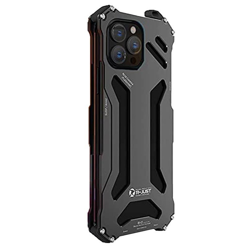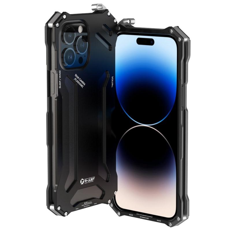R-JUST Mechanical Armor Metal Shockproof Case for iPhone 14 Pro Anti-Fall Phone Shell Hollow Design Phone Protector