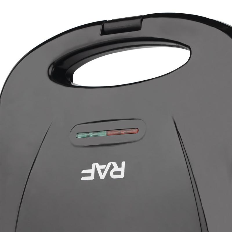 The RAF R.201 Sandwich Maker is designed to prepare two perfectly toasted sandwiches at once. With 750W of heating power, double-sided heated plates and a durable non-stick surface, it delivers golden, crispy results in minutes — ideal for quick breakfasts, snacks and warm meals.