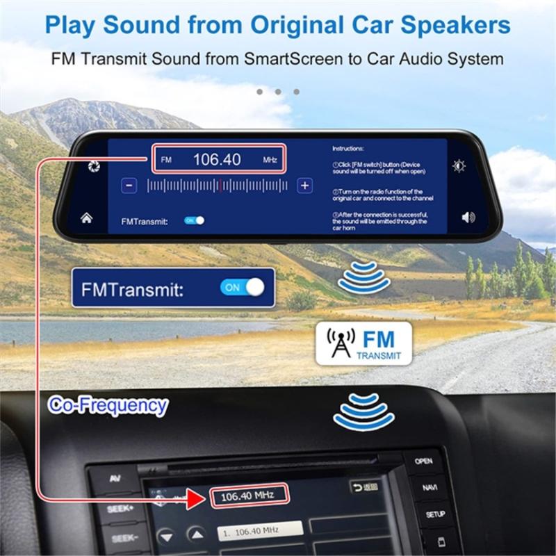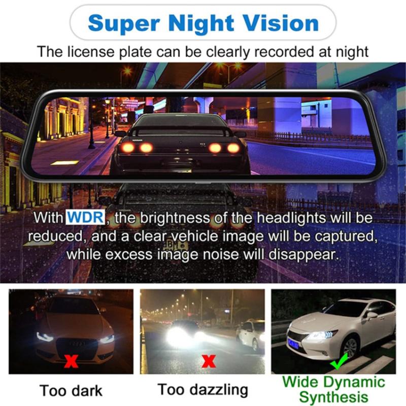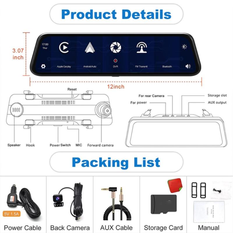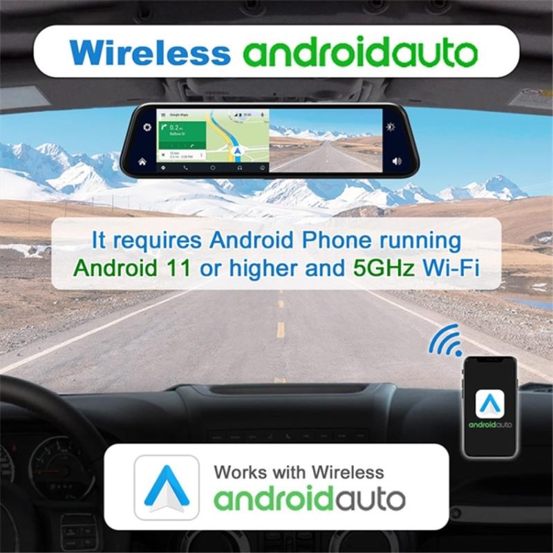 Touch Screen Rear View Mirror Dual Dash Cam with GPS Navigation, Android Auto, CarPlay, Bluetooth, Mirror Link - 9"