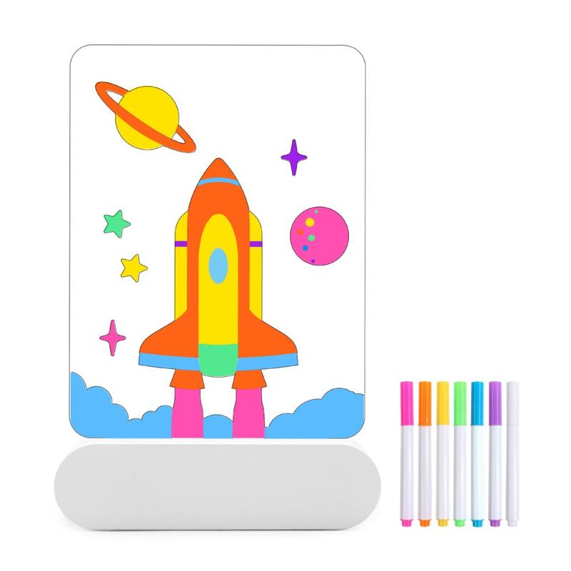 Rechargeable Erasable LED Drawing Board with 7 Color Pens - 3D Acrylic Drawing & Memo Night Light