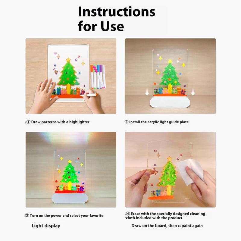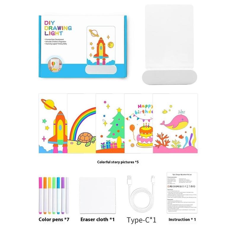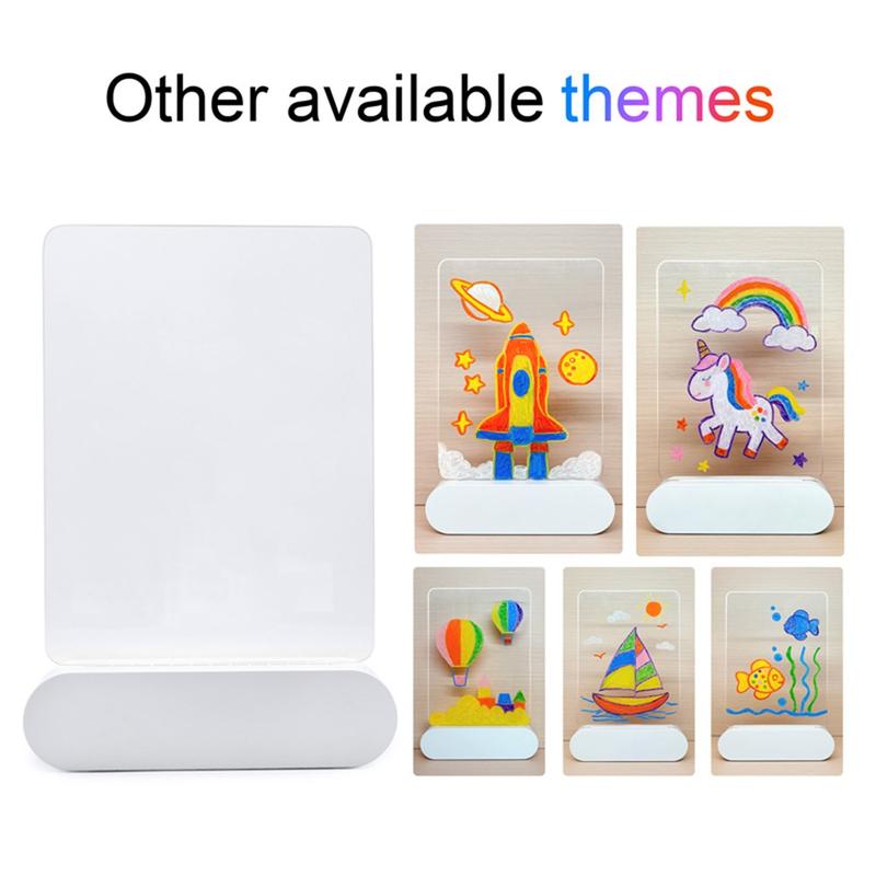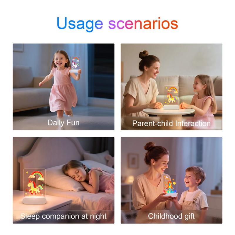 The LED light in the acrylic base uses edge-lighting technology, which directs light through the transparent surface to make drawings glow - the same principle used in high-end display signage and 3D illusion lamps.