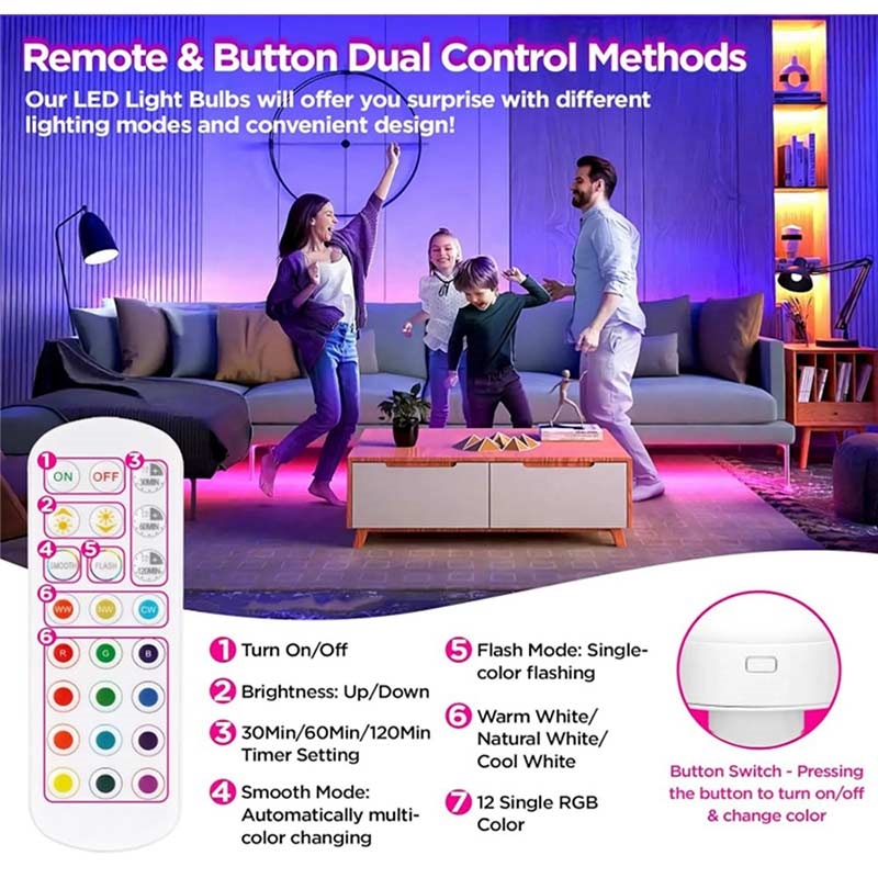 - Remote Control: Adjust brightness, warmth, 15 colors, and timer settings