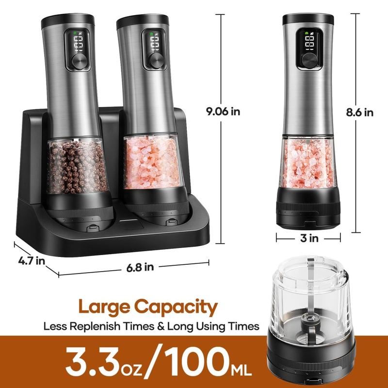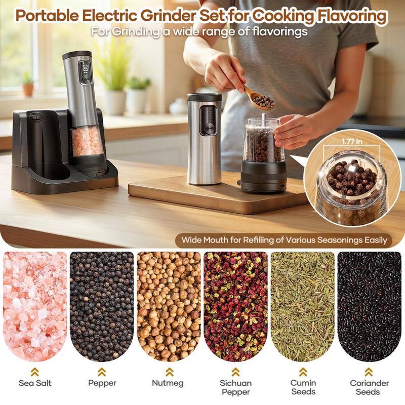 Rechargeable Stainless Steel Electric Spice Grinder Set - Ceramic Grinding Head, 5-Level Coarseness Adjustment, 100ml Capacity