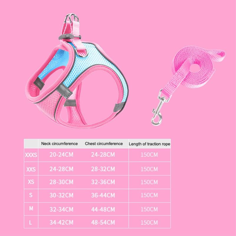 Enhance your pet's comfort and safety during outdoor adventures with our Outdoor Reflective Dog Harness and Breathable Mesh Cat Vest. Designed for small dogs and cats, this harness features a vest-style design that evenly distributes pressure, reducing strain on your pet's neck. Crafted from breathable mesh material, it ensures a soft and comfortable experience, while reflective strips enhance visibility during low-light conditions. The included 150 cm leash provides ample freedom for your pet to explore securely.