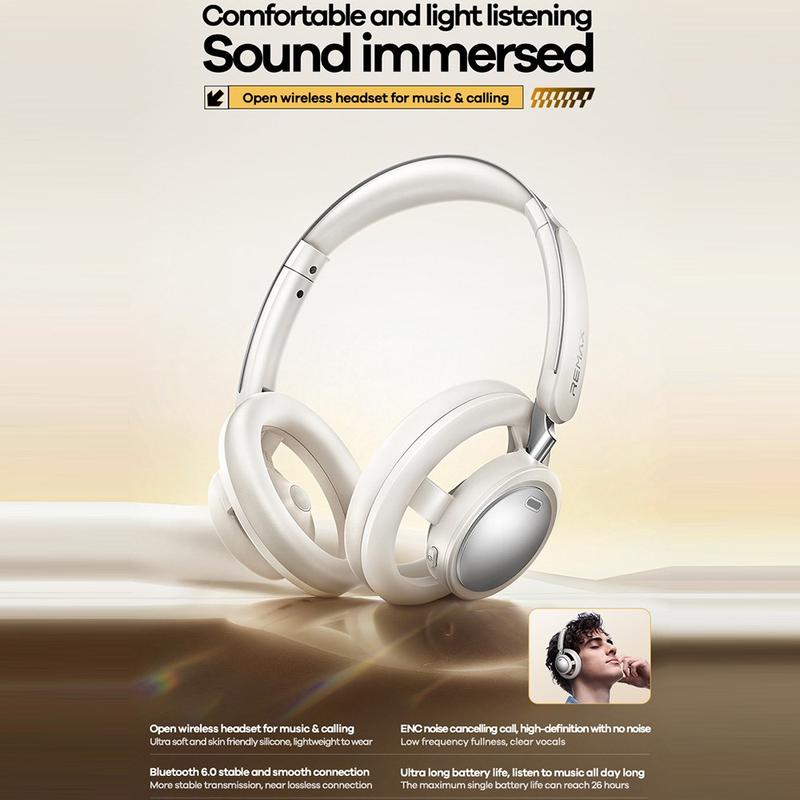 Enjoy comfortable everyday listening and clearer calls with the REMAX RB-870 wireless headphones. The open-back design feels light and breathable for long wear, making them a great choice for workdays, commuting, and casual listening. With Bluetooth 6.0, you get a stable connection up to 10 m, while ENC call noise cancellation helps reduce surrounding noise so your voice comes through more clearly on calls. USB-C charging keeps it convenient, and a full charge takes about 2 hours—with up to 30 hours talk time and 100 hours standby so you can stay connected longer without battery stress.