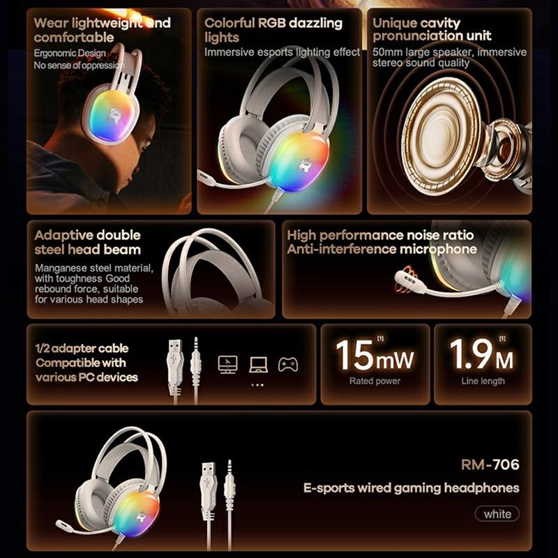 Upgrade your gaming experience with the Remax RM-706 Gaming Headset, offering a perfect blend of performance, comfort, and style.