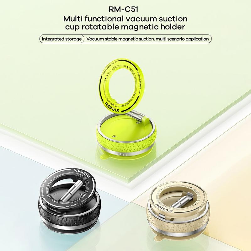REMAX RM-C51 3-Axis Magnetic Phone Holder - Vacuum-Lock Suction Cup Holder for Car, Home & Travel