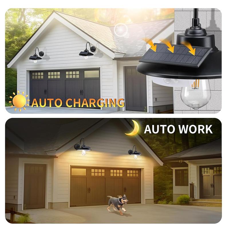 Retro Solar Barn Light with Edison-Style LED & Motion Sensor – 3-Mode IP65 Outdoor Wall Lamp