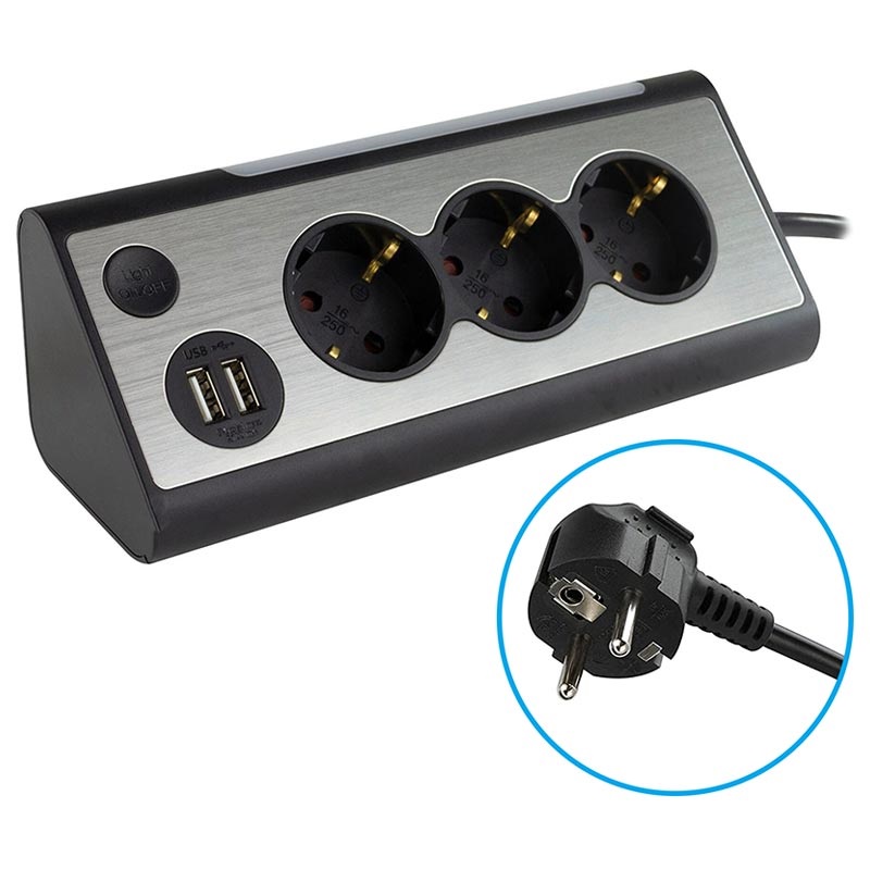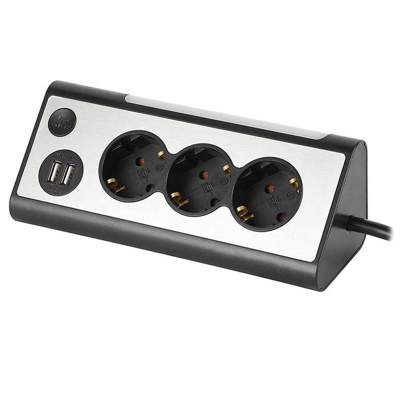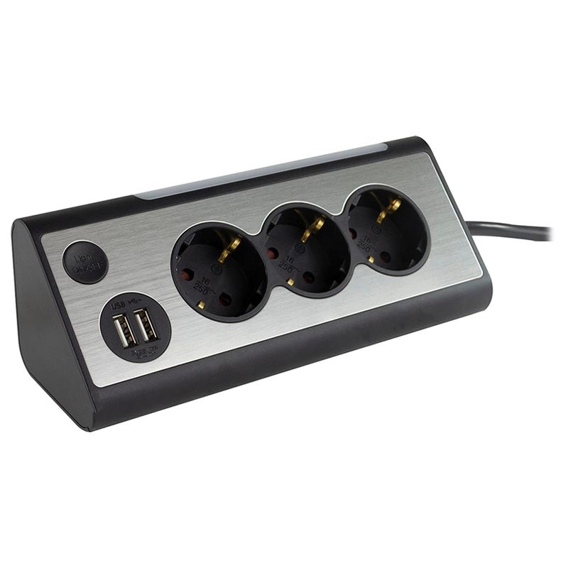 The REV Light Socket features an angled design perfect for use on desks, kitchen counters, and other surfaces, giving you easy access to three sockets.